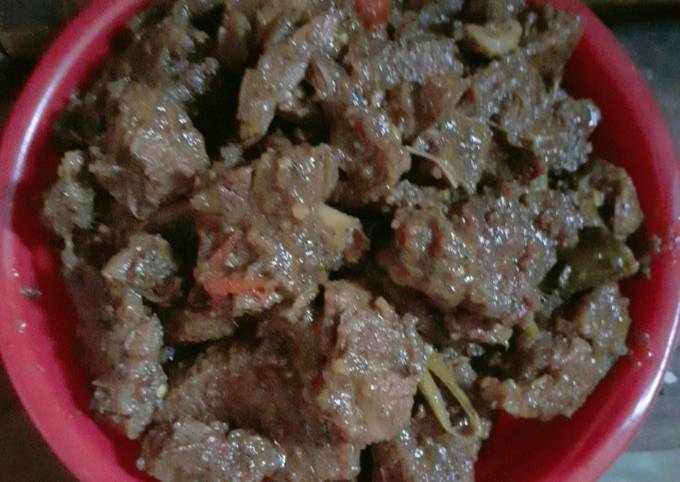 - Jika sudah diberi santan sering2 di aduk2 daging sampai bener2 daging empuk dan benar2 sat air nya dan kering... jika sudah sat dan kering matikan kompor lalu pindahkan daging pd wadah laen...